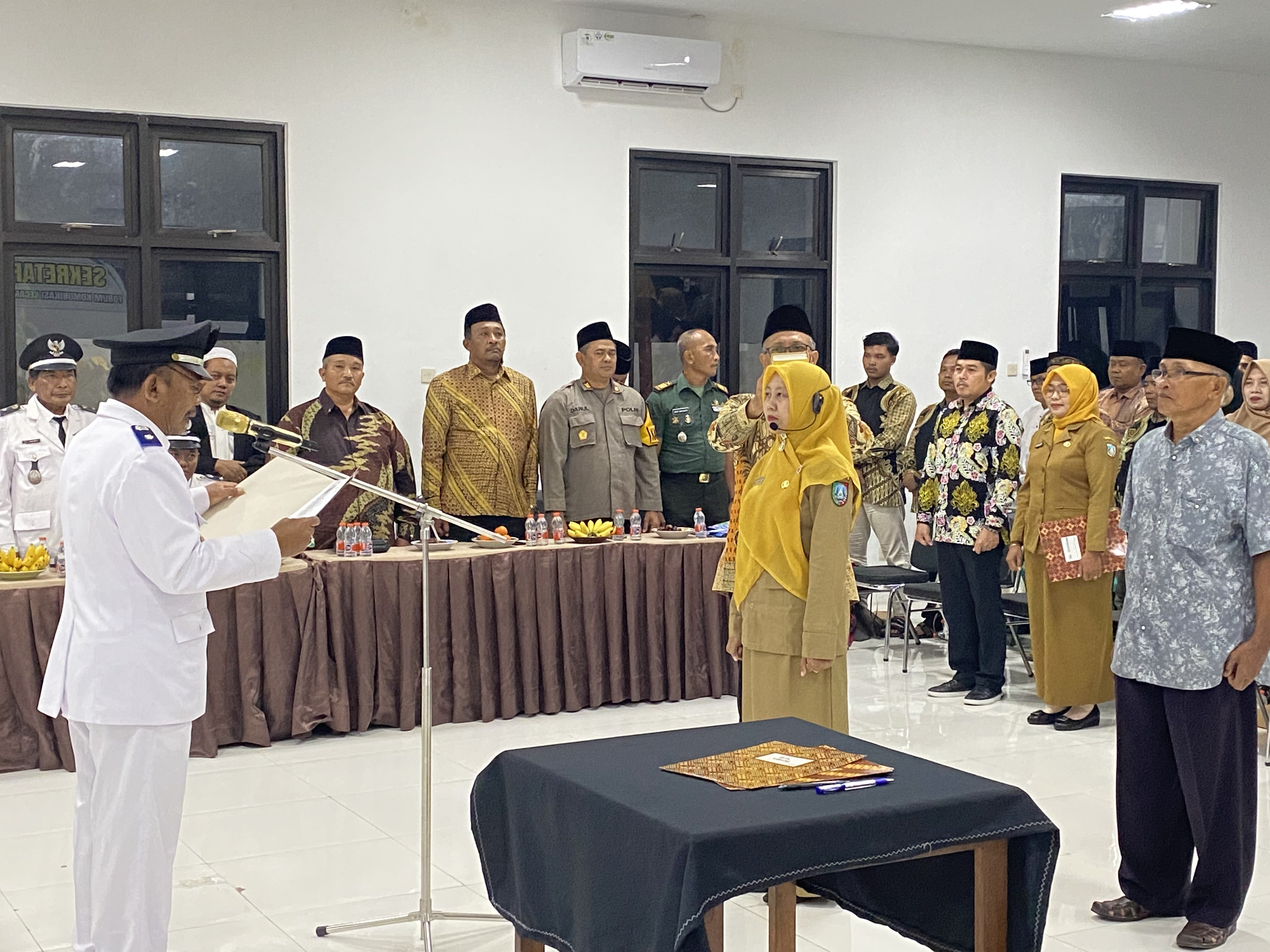 Prosesi pelantikan dan pengambilan sumpah jabatan berlangsung dengan tertib dan penuh khidmat. Dalam sambutannya, Sudiro Setiono menyampaikan bahwa perangkat desa memiliki peran strategis dalam mendukung roda pemerintahan desa serta pelayanan kepada masyarakat. Ia menekankan pentingnya integritas, tanggung jawab, dan loyalitas dalam menjalankan amanah jabatan.