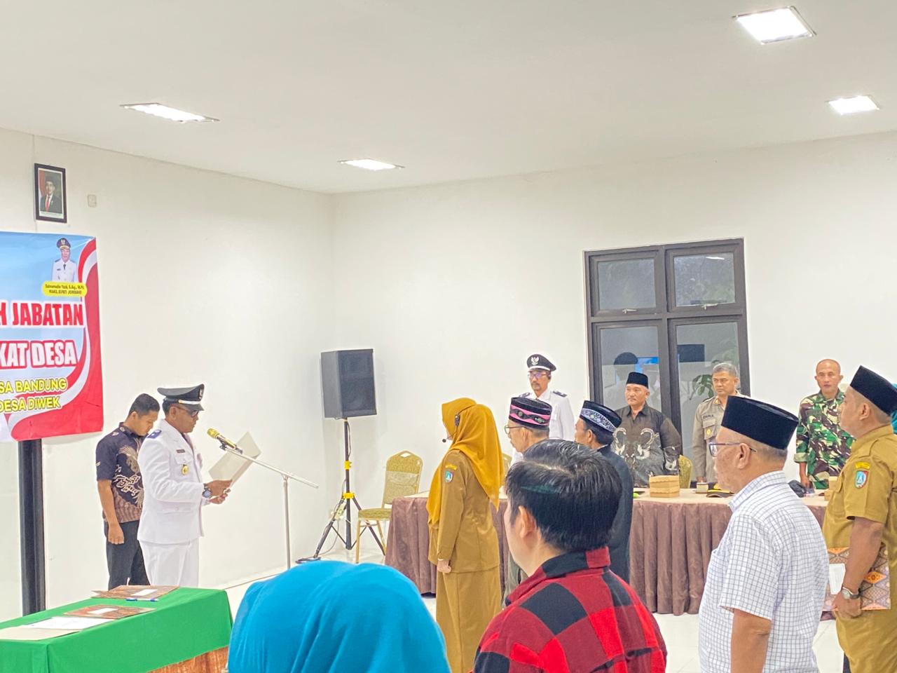 Kegiatan ini merupakan bagian dari proses pengisian perangkat desa guna mendukung kelancaran penyelenggaraan pemerintahan desa serta meningkatkan kualitas pelayanan kepada masyarakat. Adapun perangkat desa yang dilantik berasal dari Desa Bandung dan Desa Diwek