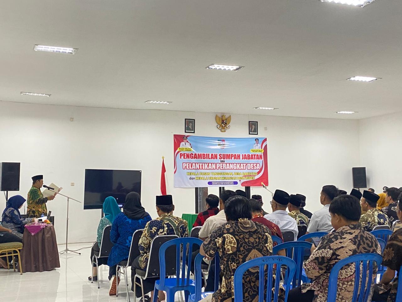 Pemerintah Kecamatan Diwek, Kabupaten Jombang, melaksanakan kegiatan Pengambilan Sumpah Jabatan dan Pelantikan Perangkat Desa pada hari Sabtu, 3 Januari 2026. Acara berlangsung mulai pukul 19.00 WIB hingga selesai, bertempat di Aula Kantor Kecamatan Diwek, Kabupaten Jombang.