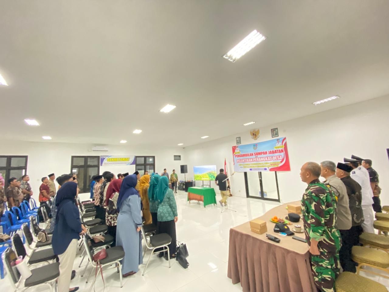 Prosesi pelantikan berlangsung dengan khidmat, diawali dengan pembacaan keputusan pengangkatan, dilanjutkan dengan pengambilan sumpah jabatan, serta penandatanganan berita acara pelantikan. Dengan dilantiknya perangkat desa tersebut, diharapkan mampu menjalankan tugas dan tanggung jawab sesuai dengan peraturan perundang-undangan yang berlaku serta berkomitmen memberikan pelayanan terbaik kepada masyarakat.